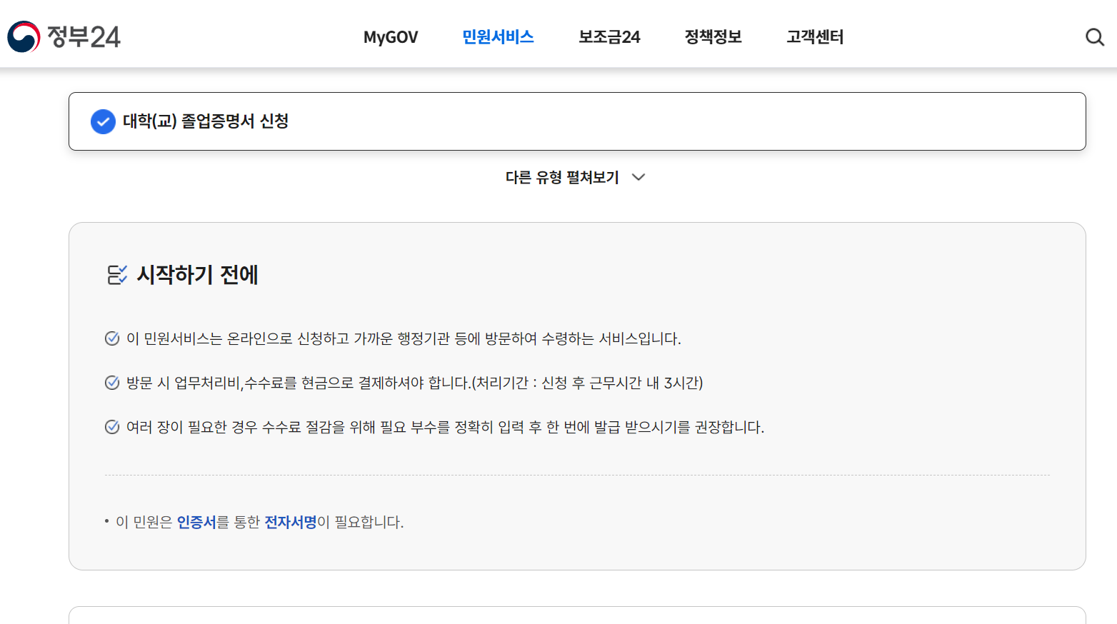 되도록이면 미리 정부24 이용해서 편하고 저렴하게 이용하시기를 추천드립니다. 이상으로 대학교 졸업증명서 인터넷발급 방법을 모두 마치겠습니다. 도움이 되셨길 바랍니다.