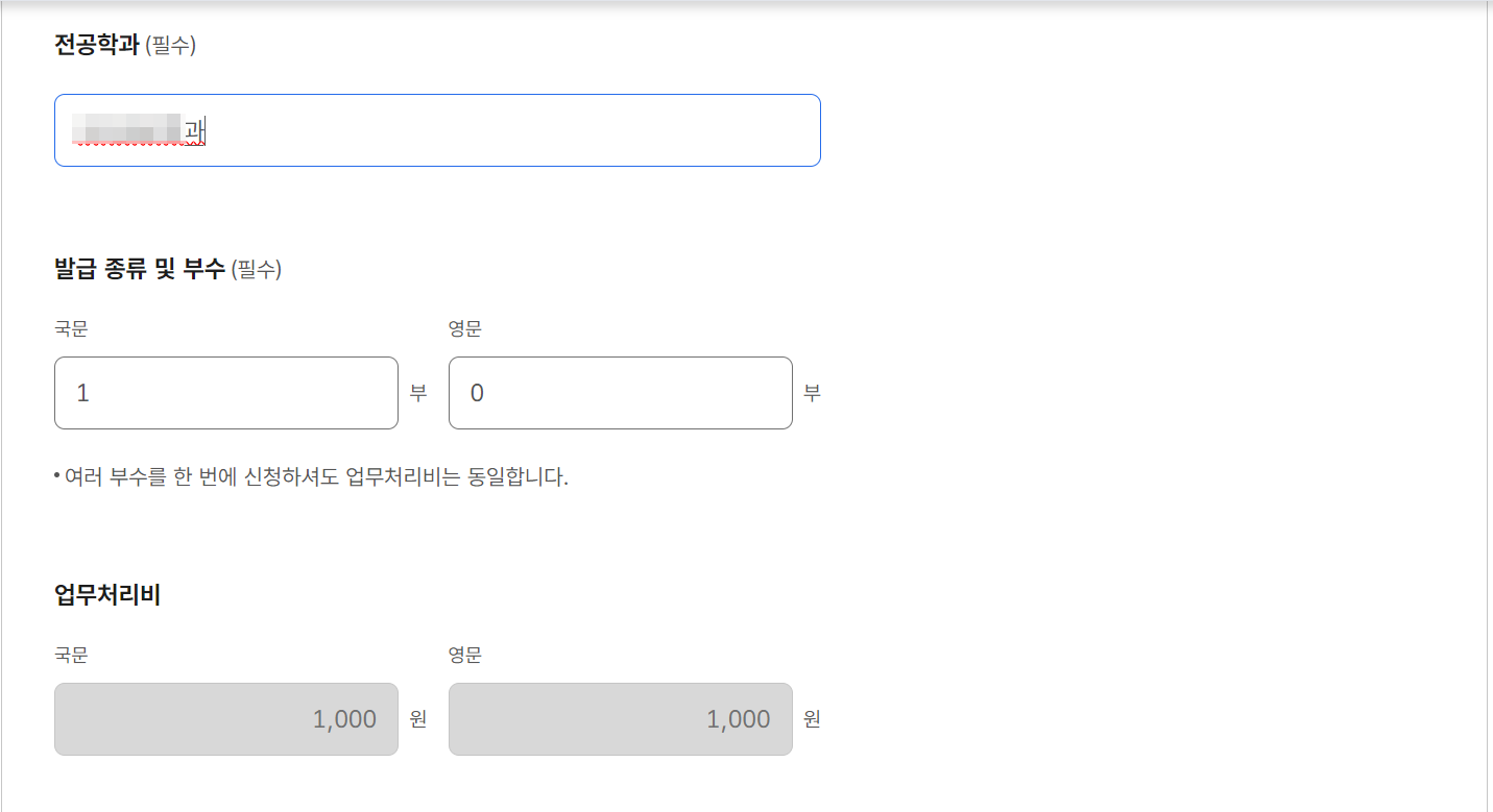 만약 시간이 없고 빠르게 졸업증명서를 제출해야하는 경우라면 비용이 다소 들더라도 웹 민원센터에서 온라인으로 바로 발급 받으면 됩니다. 증명서 출력에 대행수수료까지 붙어서 기본 3000원~4000원 정도 합니다. 학교마다 증명서 수수료가 다르기 때문에 비용의 차이가 발생할 수 있습니다.